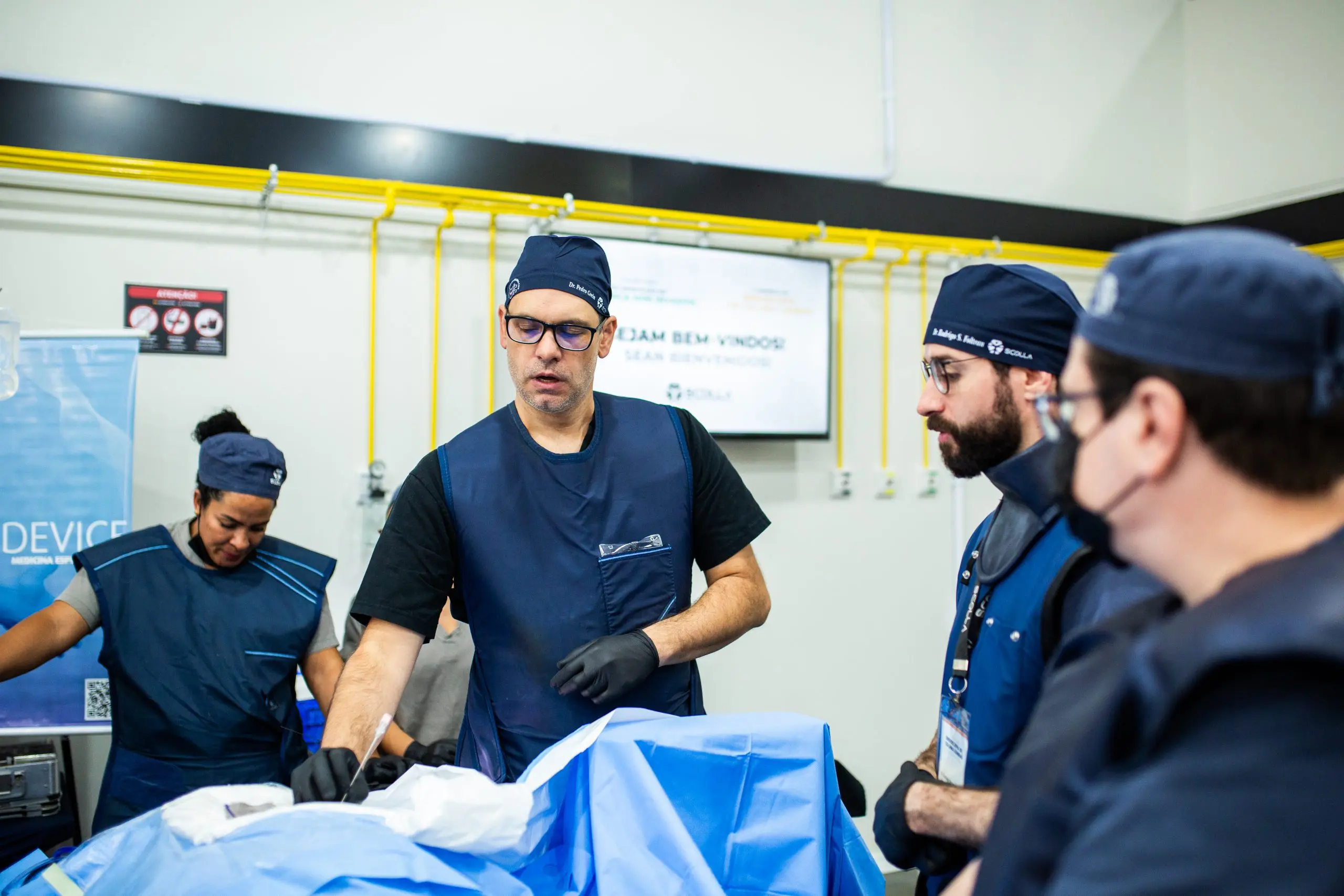 • Cirurgias ao vivo, proporcionando observação direta das técnicas em tempo real.